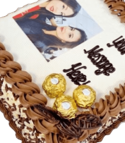 Ferrero Chocolate & Chocolate Curls On Side Photo Birthday Cake