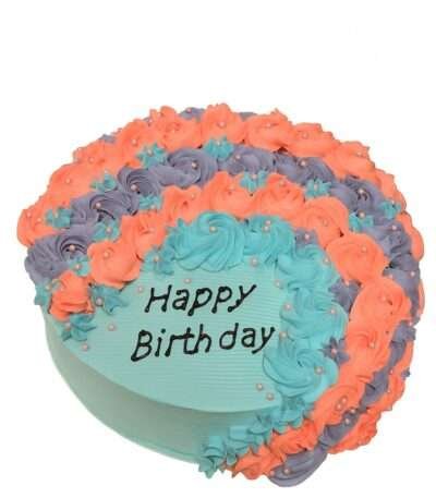 photo cake with multi coloured cream piping